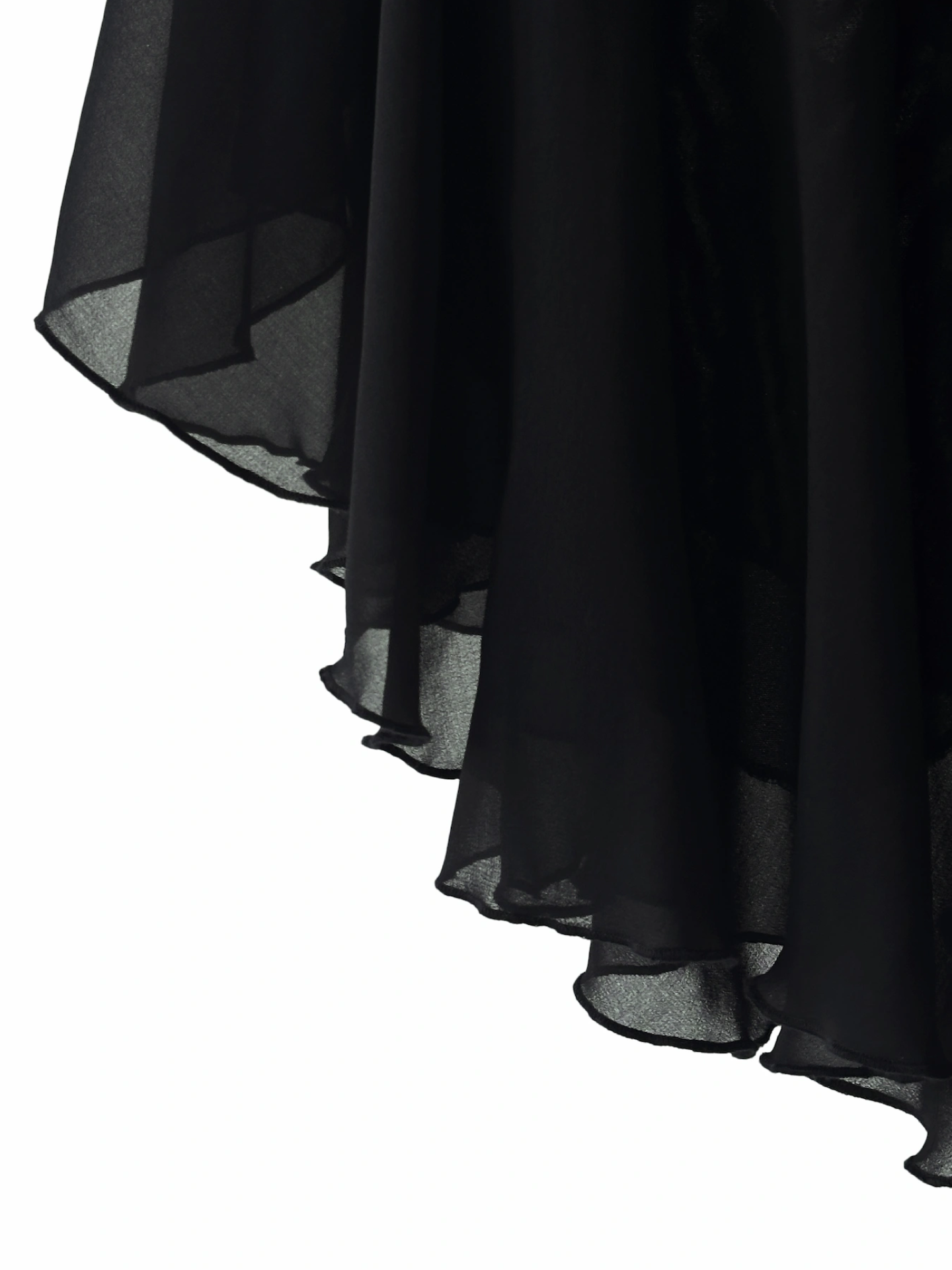 This two-layer black trumpet skirt, decorated with handmade lace details, flows gracefully while walking and dancing, highlighting the femininity of all body types.