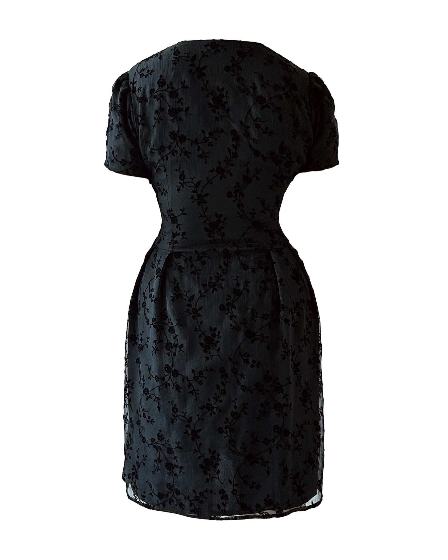 This two-layer black trumpet skirt, decorated with handmade lace details, flows gracefully while walking and dancing, highlighting the femininity of all body types.